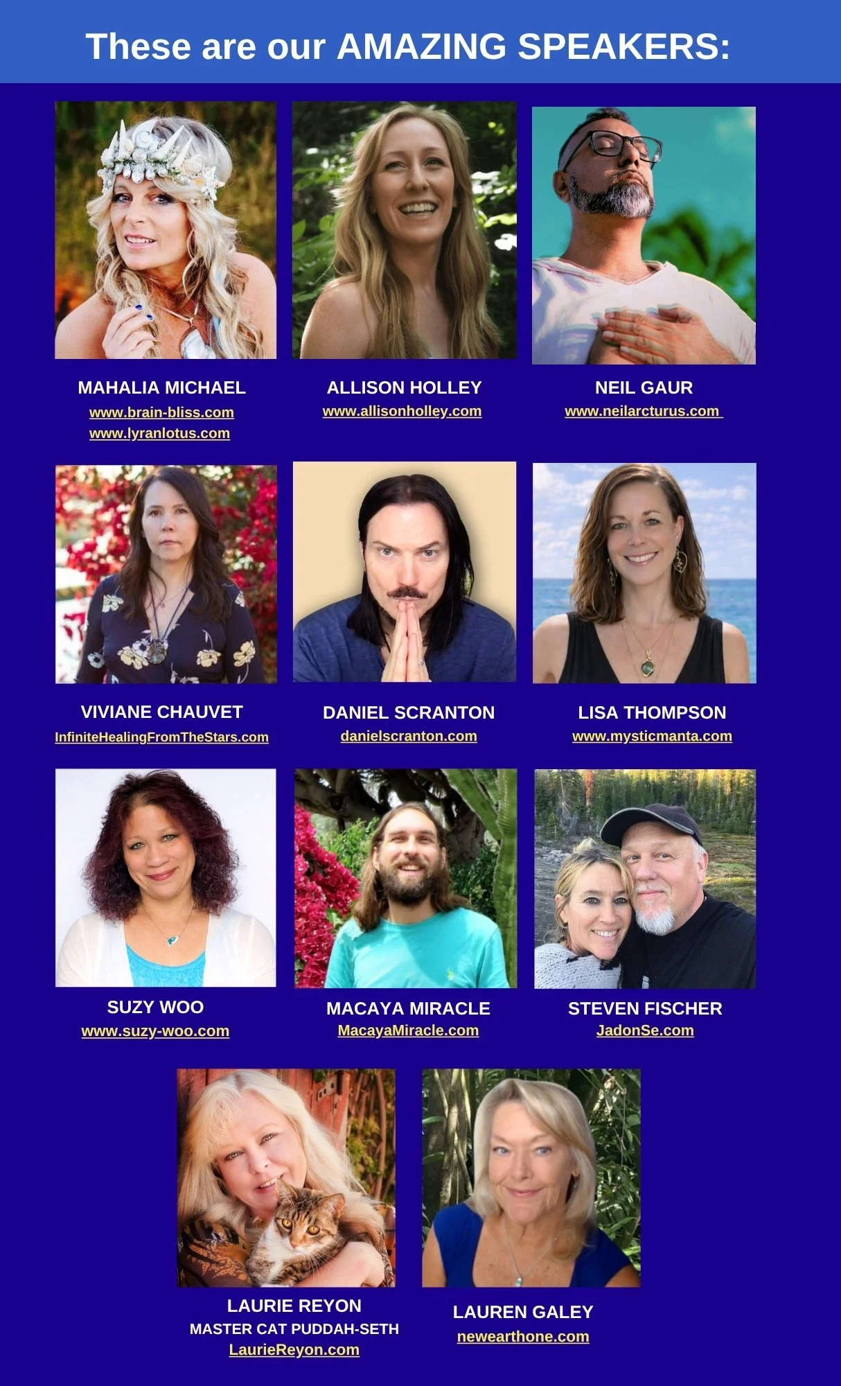 Each presenter offers a unique doorway—through teachings, transmissions, activations, and lived wisdom—supporting you in reconnecting with your own cosmic knowing.